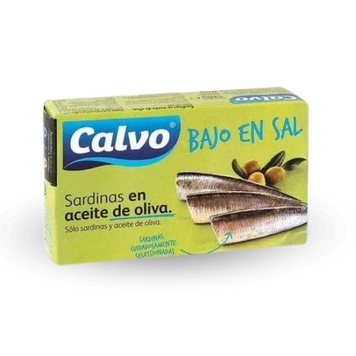 SARDINAS ENTERAS EN ACEITE DE OLIVA Calvo BAJO EN SAL Calvo 115g.